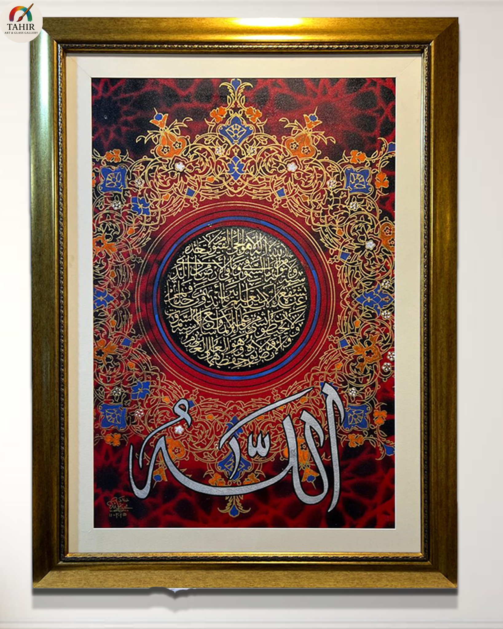 A masterpiece of faith and craftsmanship — this handmade oil painting features the sacred word “Alhamdulillah” in elegant Arabic calligraphy.
